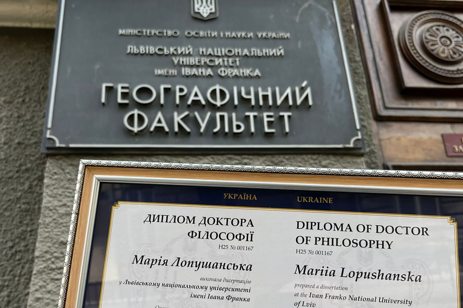 Background: On May 21, 2025, at a meeting of the one-time specialized academic council DF 35.051.227 at the Ivan Franko National University of Lviv, a postgraduate student (PhD) of the Department of Constructive Geography and Cartography Maria Lopushanska successfully defended her dissertation on the topic: “Renewable energy in Lviv region: state and environmental impact” for the degree of Doctor of Philosophy in the specialty 103 “Earth Sciences”.